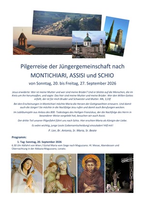 Pilgerreise der Jüngergemeinschaft nach MONTICHIARI, ASSISI und SCHIO